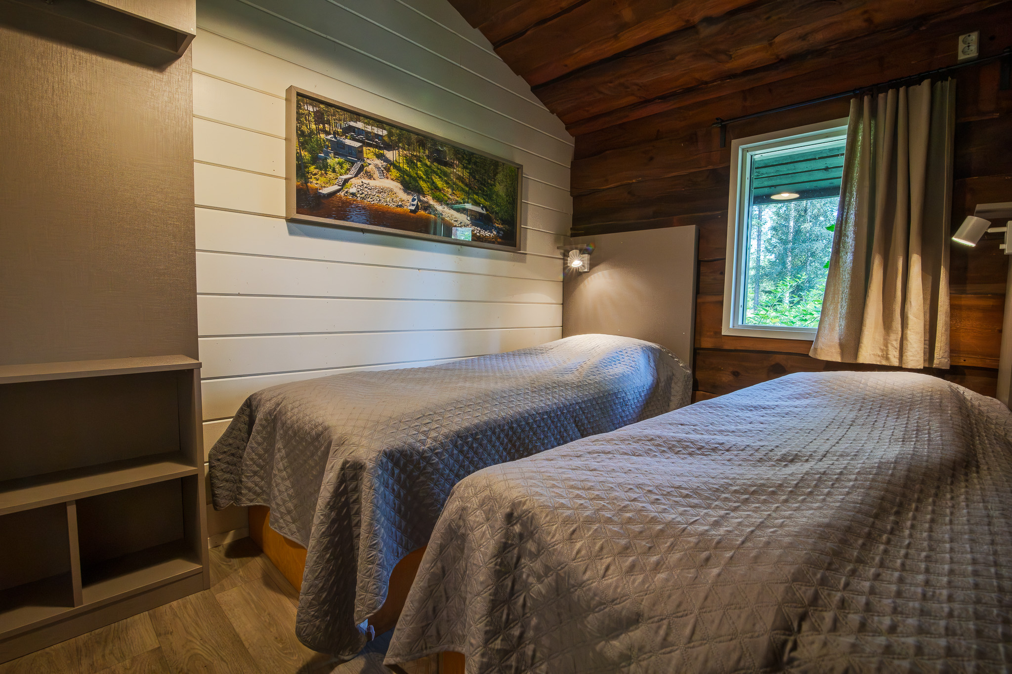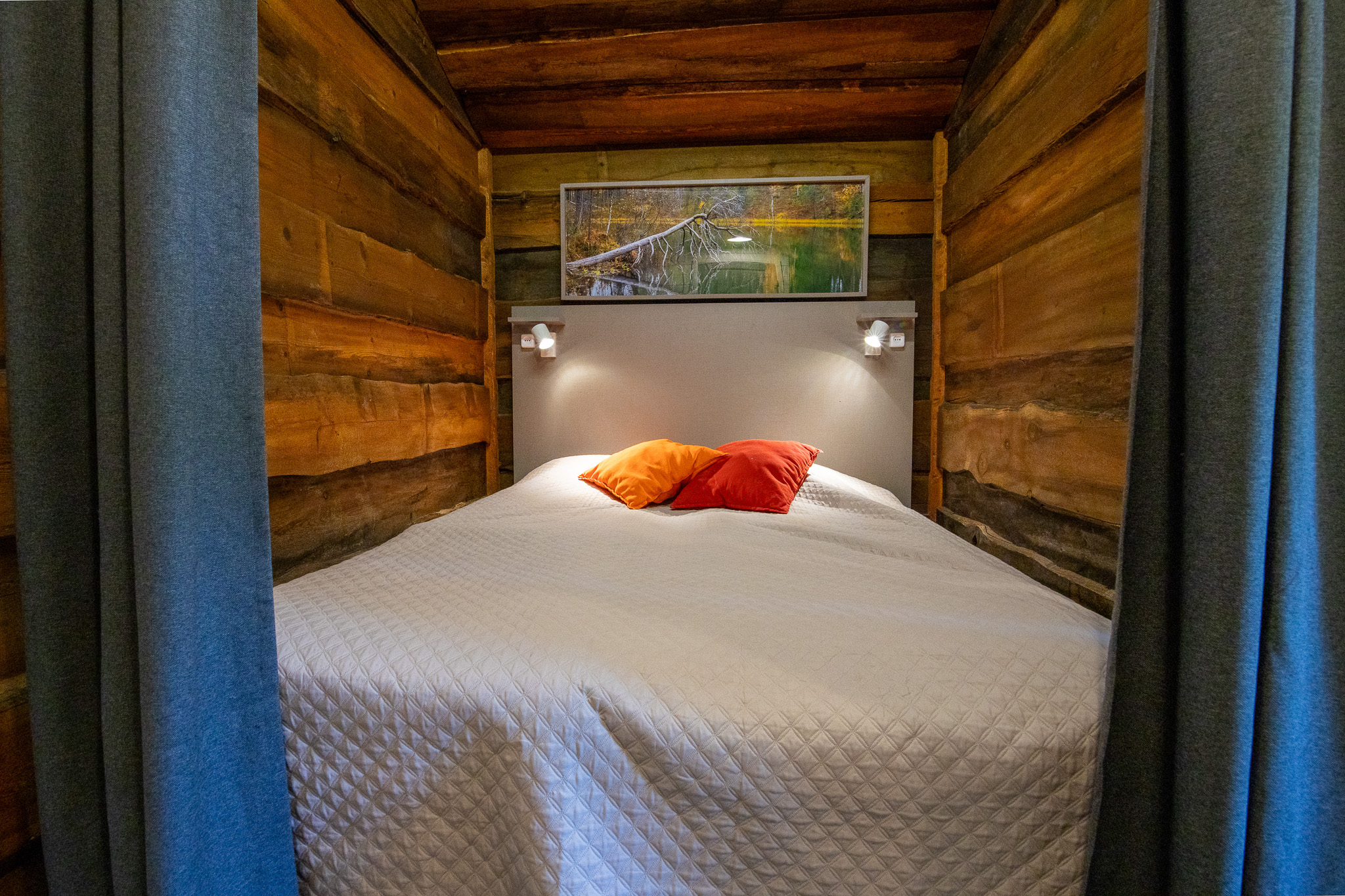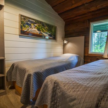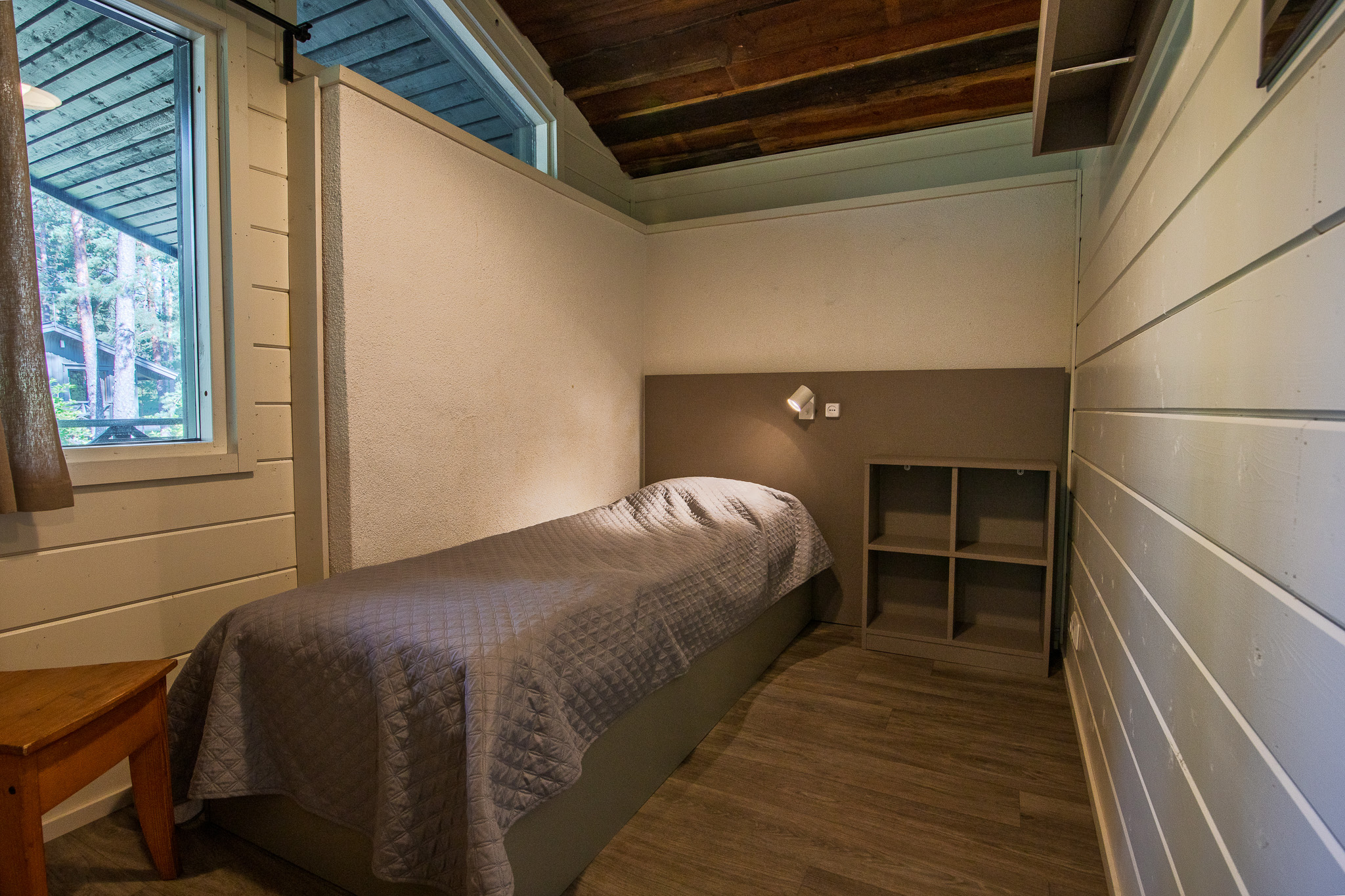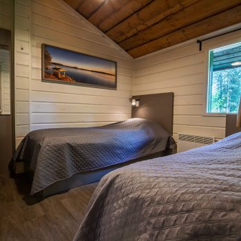 Päärakennuksessa on kolme makuuhuonetta ja yksi alkovi. Makuuhuoneista kahdessa on kaksi yksittäistä 80×200 vuodetta ja yhdessä yksittäinen 80×200 vuode. Alkovissa on parivuode. Lisäksi huoneissa lukuvalot, vaatesäilytys ja peili.