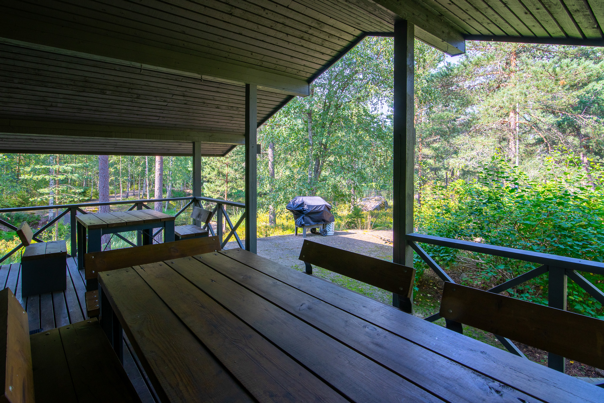 Kaasugrilli päärakennuksen terassilla, savustuslaatikko, halkogrillejä kaksi ( yksi vierasmökin edustalla ja toinen päärakennuksen läheisyydessä), tikkataulu, kylpytynnyri 4-6 hengelle, intiaaniteltta tiipi, polttopuut puuvajassa. Alueen eteläreunalla on tiipii teltta! Soutuvene lammella soutamiseen. Mökillä oleva lampi on pehmeäpohjainen metsälampi jossa voi uida. Lammessa ei kalaa 🙂