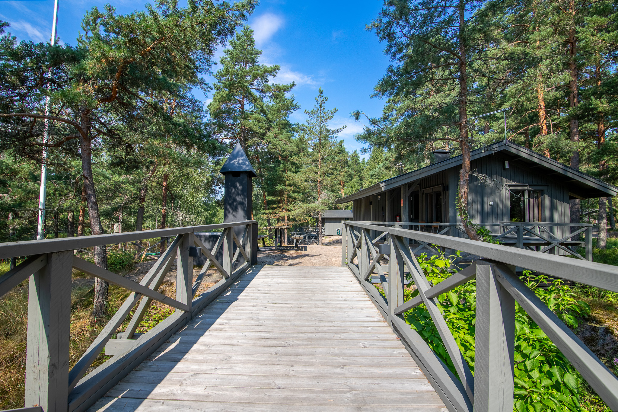 Alueen isossa lammessa on saari johon pääset siltaa pitkin. Saaren toisessa päässä on myös silta josta pääset takaisin ”mantereelle” ja siellä sinua odottaa aito intiaaniteltta ”tiipii”! Täällä vietät tunnelmallisia grillaushetkiä.