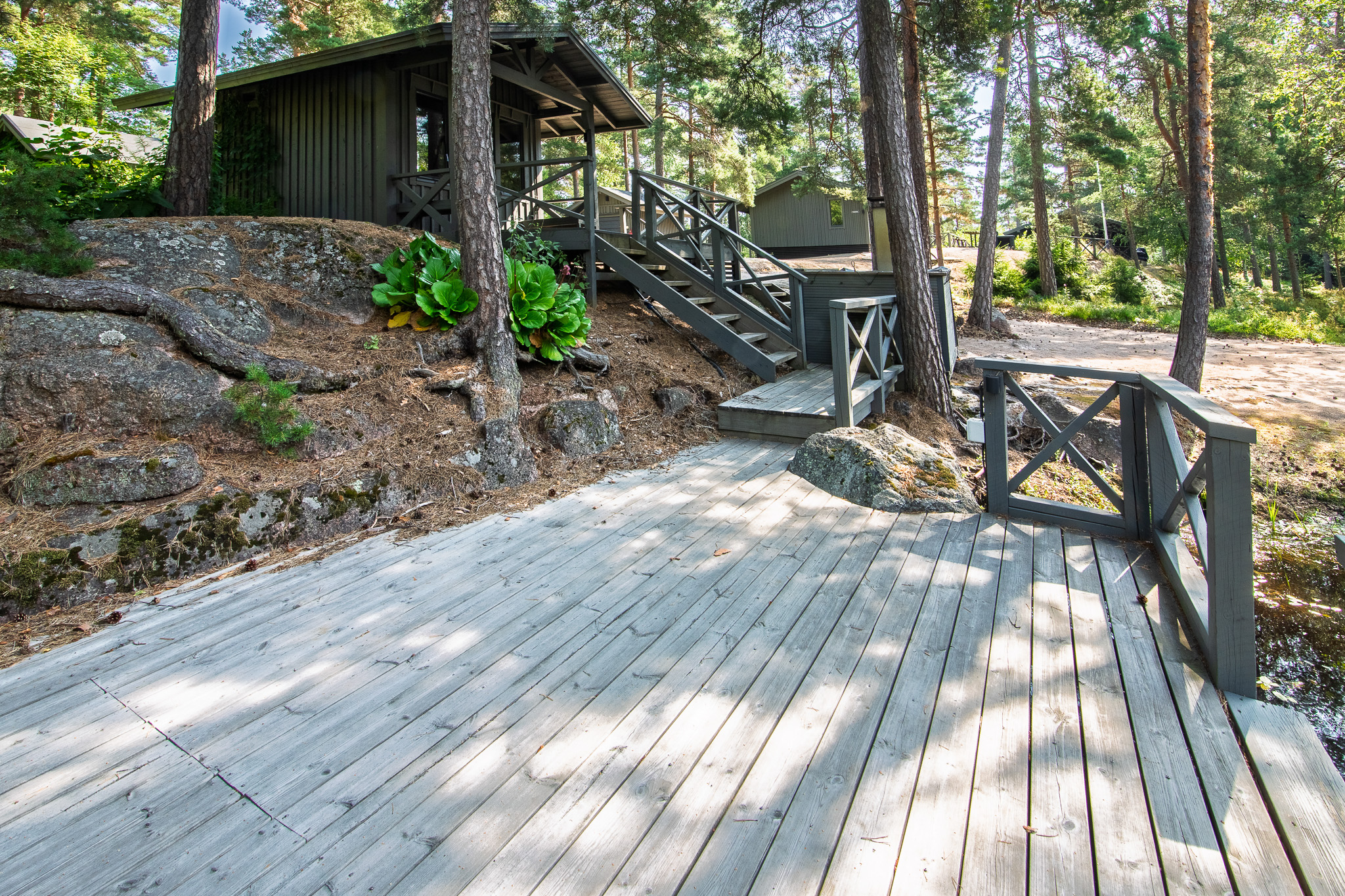 Alueella paljon lampia, kallioita ja luonnontilaista luontoa. Kaikki rakennukset on sijoitettu luonnon ehdoilla ja ne asettuvat huomaamattomasti puiden katveeseen.